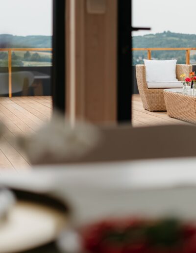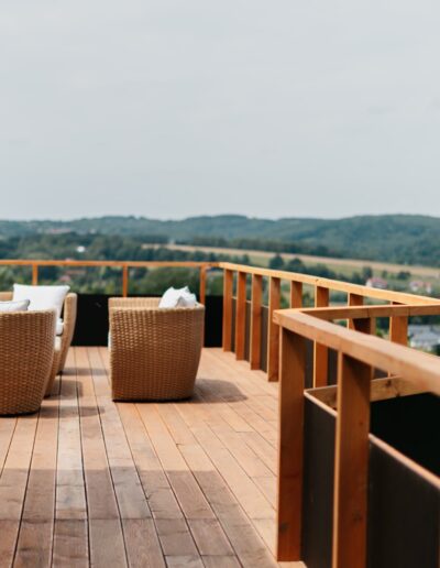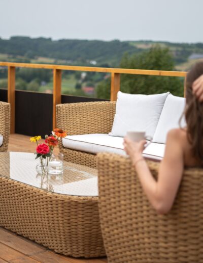 Oba tarasy są w całości obudowane, co sprawia, że poczujecie się w Małej Przystani jeszcze bardziej komfortowo i prywatnie.