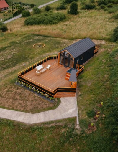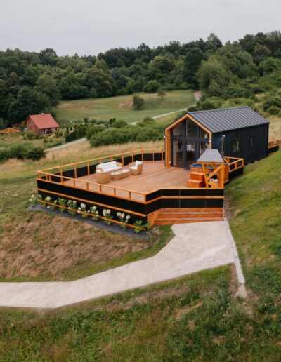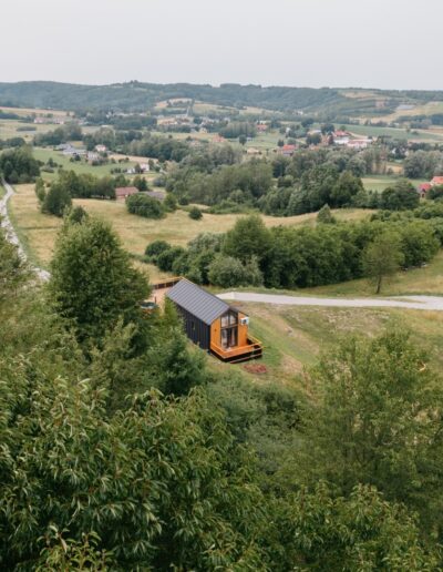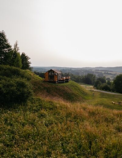 Usytuowaliśmy go na wzniesieniu z którego rozciągają się przepiękne widoki na lokalny krajobraz. Jesteśmy położeni na uboczu, z dala od gęstych zabudowań, tras szybkiego ruchu, hałasu i innych ludzi. Towarzyszyć Wam będzie jedynie szum wiatru i śpiew ptaków.